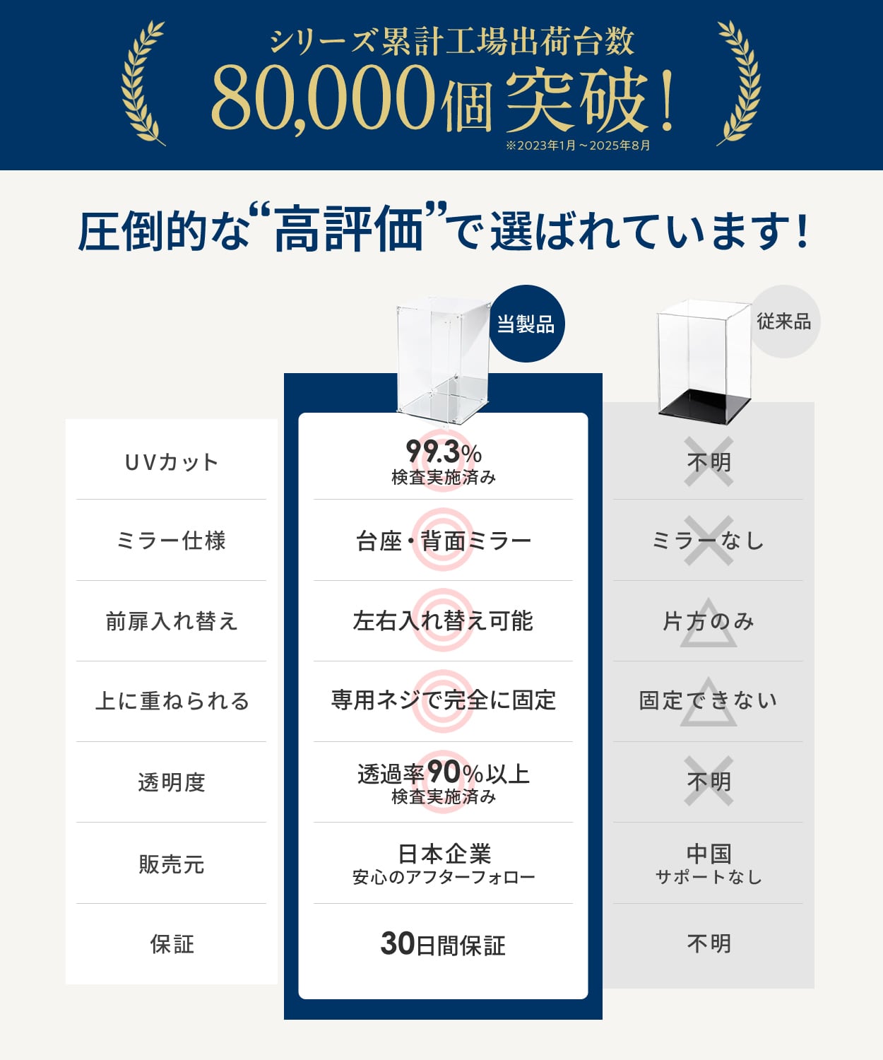 ✅【商品詳細】(外寸)横幅25×奥行25×高さ35cm。UVカット。台座・背面ミラー仕様。保護フィルム付。マグネット前扉。素材:アクリル