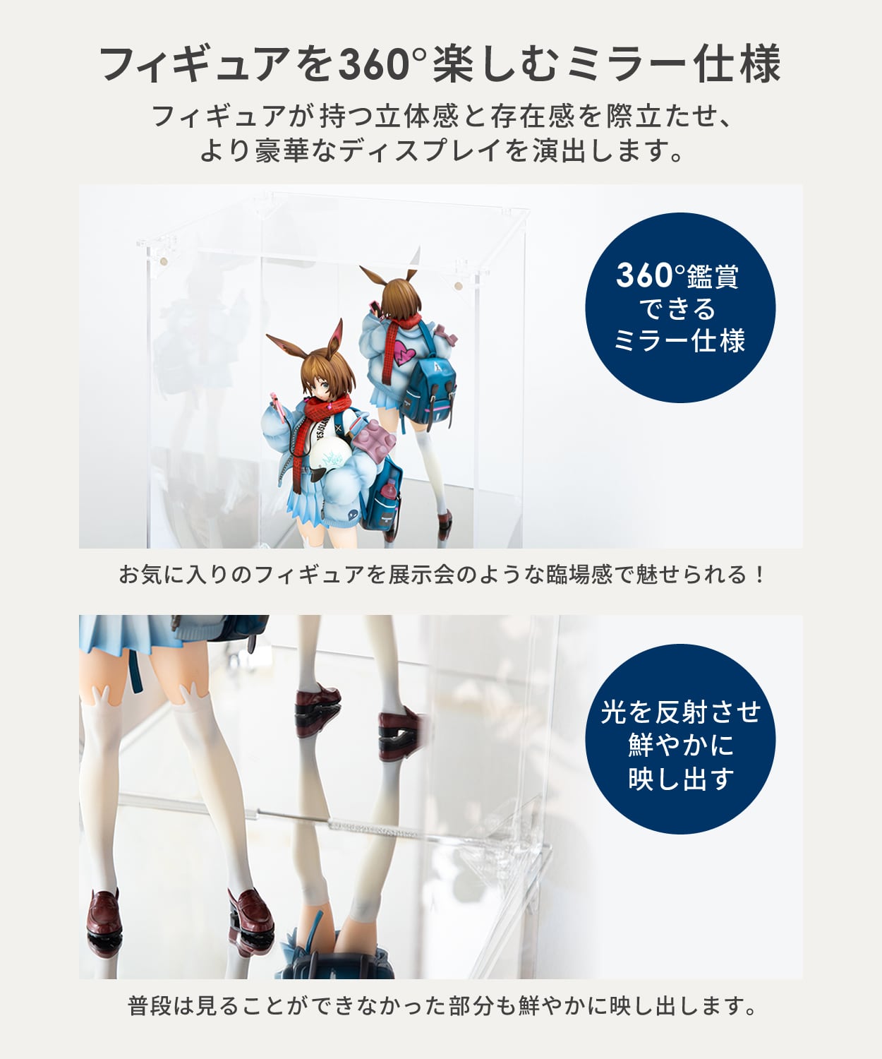 ✅【魅力が圧倒的に違う】台座と背面をミラー仕様にすることにより、よりフィギュアの魅力を引き立てます。美少女フィギュア好きにはたまりません。