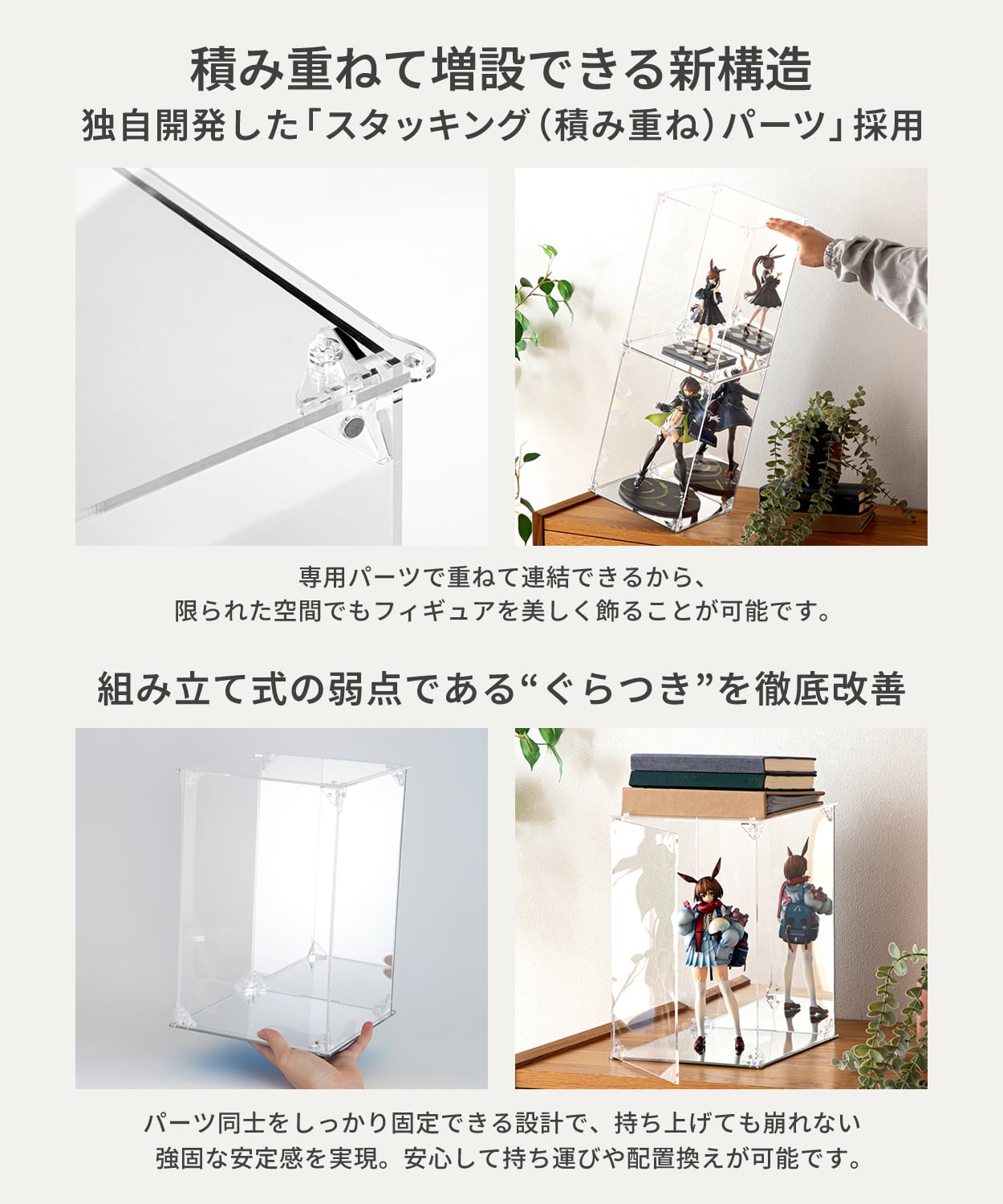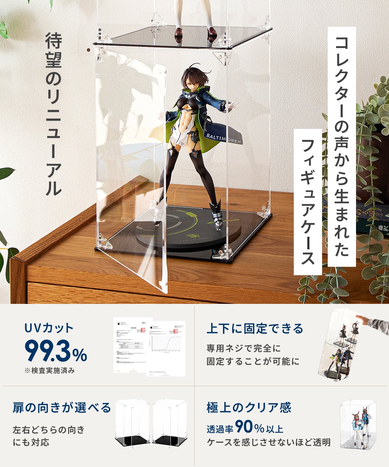 ✅【商品詳細】(外寸)横幅25×奥行25×高さ35cm。UVカット。台座・背面ミラー仕様。保護フィルム付。マグネット前扉。素材:アクリル