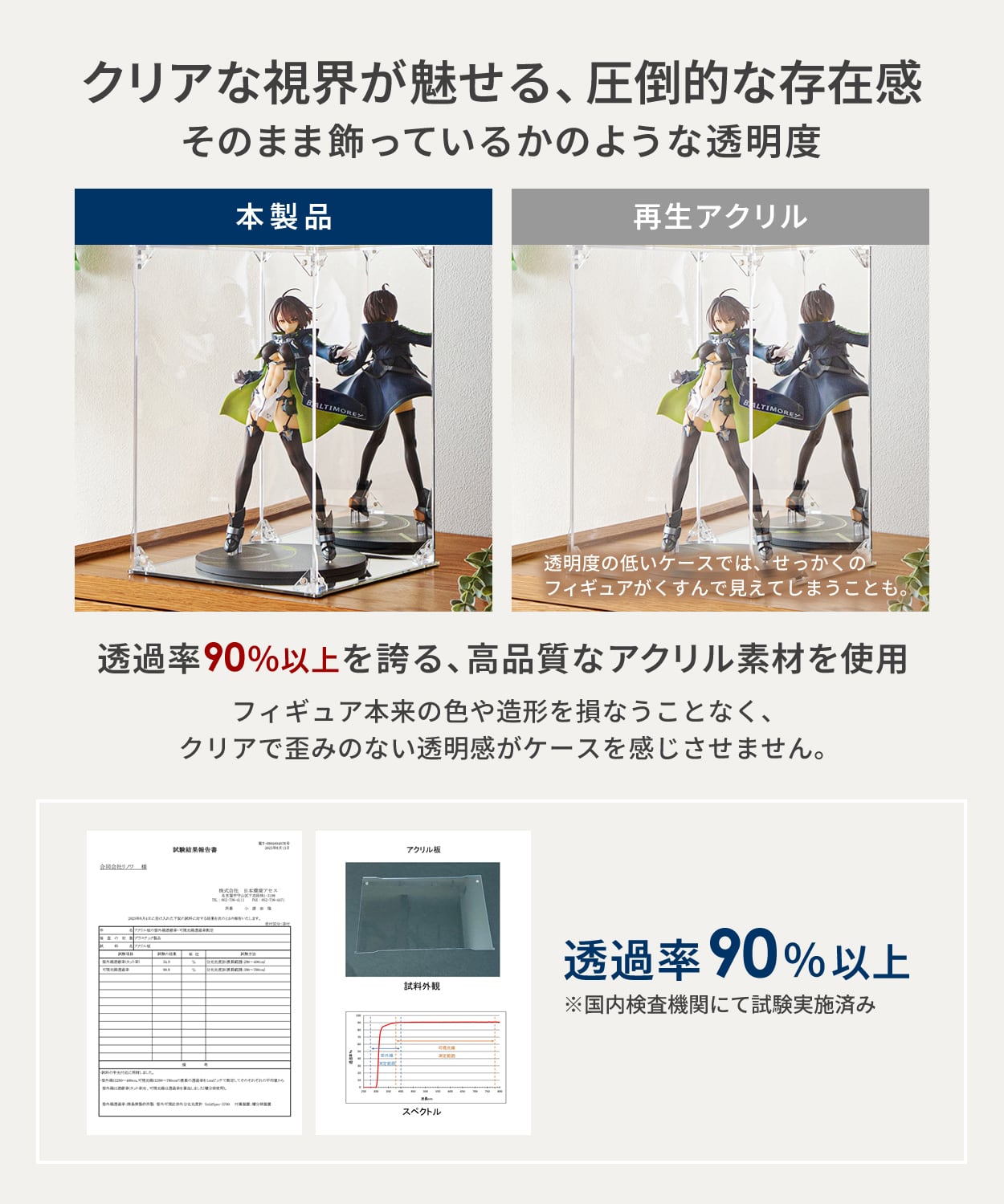 ✅【抜群の透明度】アクリルの透過率は90%以上。再生アクリルの場合は曇って見える場合があります。また、ガラスと比べ軽量で割れにくく、移動も楽にできます。